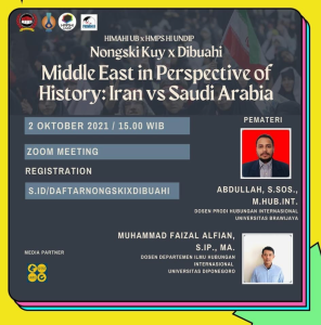 Prodi Hubungan Internasional (HI) UNDIP bersama HIMAHI Universitas Brawijaya (UB) sukses menyelenggarakan diskusi interaktif bertajuk “Middle East in Perspective of History: Iran vs Saudi Arabia”