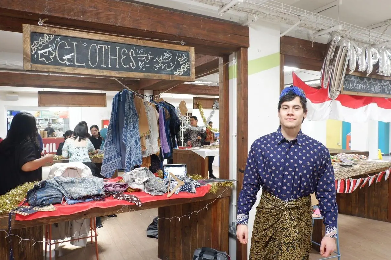 At the exhibition, several engaging booths provided visitors with an immersive cultural experience. At the “Clothes Try On” booth, visitors could try on and explore a variety of traditional Indonesian clothing, such as batik, kebaya, and sortali accessories. “Batik makes me feel fashionable and I feel comfortable wearing it,” said Elie, an international student from Switzerland, on Saturday (November 16, 2024).